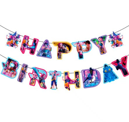 This set includes 18 latex balloons (6 blue, 6 purple, 6 pink), 16 cake toppers, 1 Happy Birthday banner, and 1 birthday backdrop — everything you need for a complete party setup.