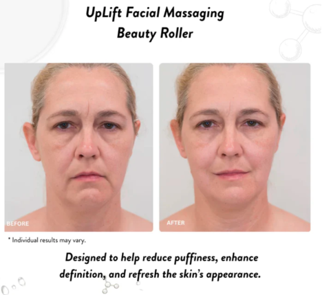YuvaRoll™ uses gentle microvibrations and germanium massage rollers to lift, tone, and refresh your skin. It helps reduce puffiness, improves circulation, and gives you a youthful glow — all from home